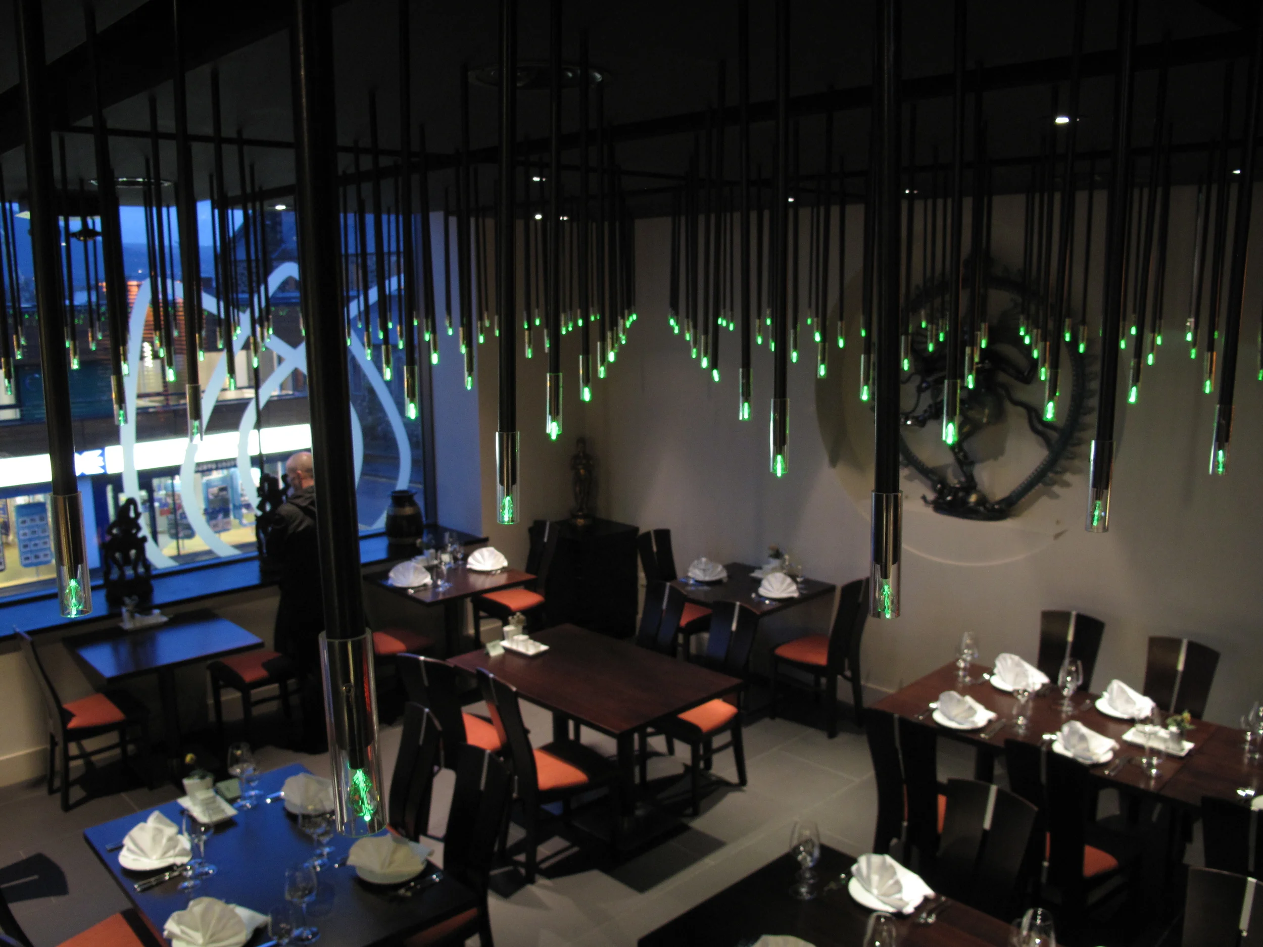 Bespoke columns designed by Chroma Lighting and manufactured by iGuzzini